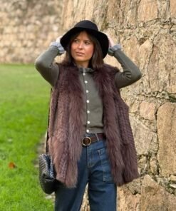 Chaleco de pelo natural en color chocolate, una prenda cálida y envolvente que aporta textura y personalidad a cualquier look. Su diseño destaca por la suavidad del pelo y por un acabado cuidado que eleva tanto estilismos casuales como conjuntos más especiales.