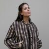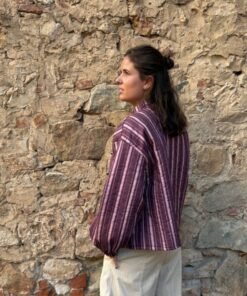 Chaqueta acolchada morada con rayas malva, ligera, cálida y llena de estilo. Perfecta para combinar con jeans o looks más formales, aportando un toque moderno y sofisticado.