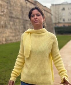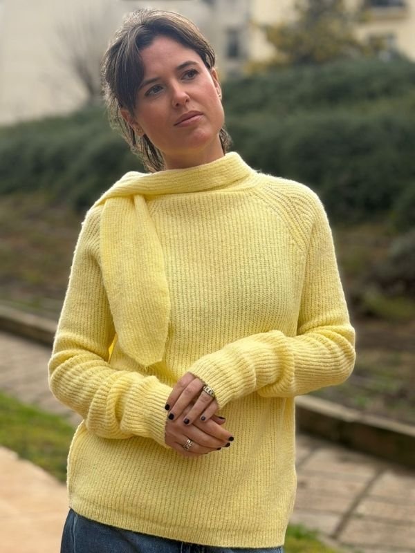 Jersey color mantequilla con lazada en el cuello, elegante y en tendencia, que aporta luminosidad y estilo a tus looks