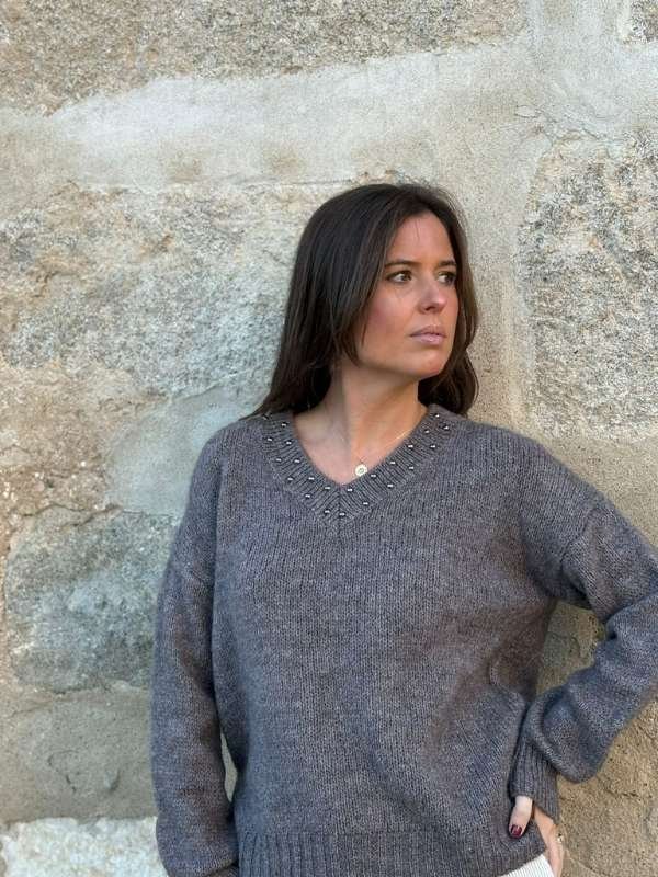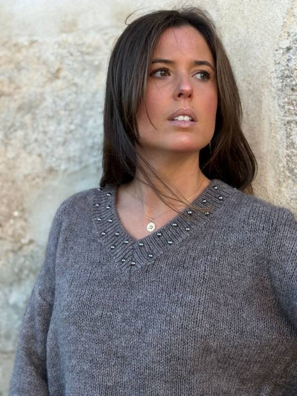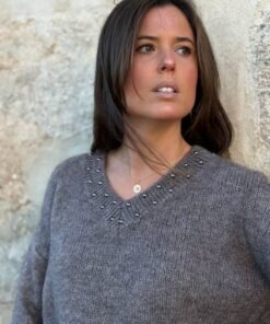 El Jersey Toppo de Pico combina suavidad, estilo y un detalle que marca la diferencia. Su cuello de pico, favorecedor y elegante, está rematado con tachuelas dispuestas en forma de V, siguiendo la línea del escote y creando un acabado sofisticado con un toque de carácter.