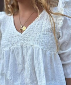 La Blusa Aria de ZEN combina romanticismo y frescura en una prenda única. Con escote en pico fruncido y delicados volantes en los hombros, aporta un aire femenino y atemporal. Sus mangas ligeras con acabado fruncido evocan un estilo vintage renovado, convirtiéndola en la opción ideal para looks versátiles y con personalidad.