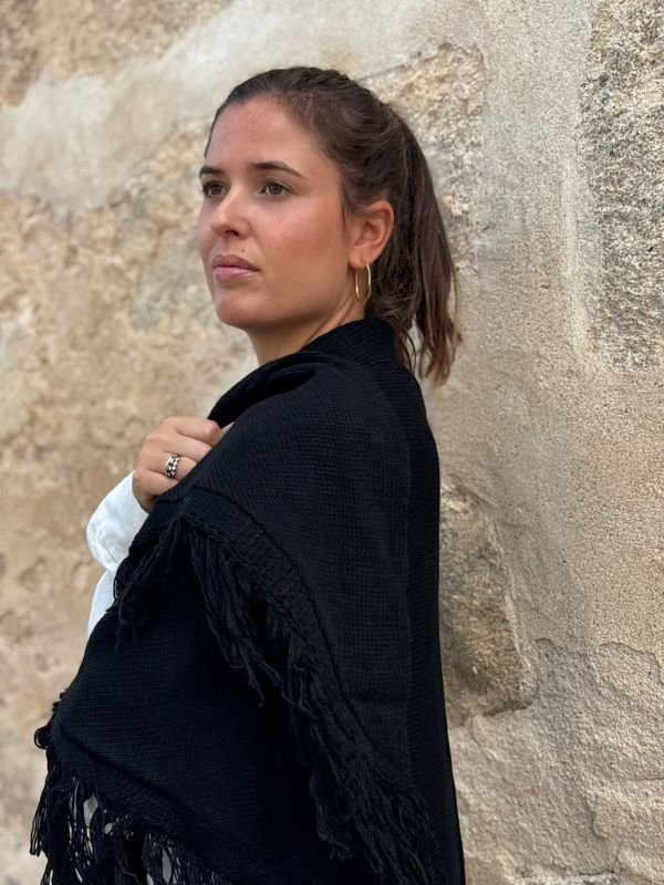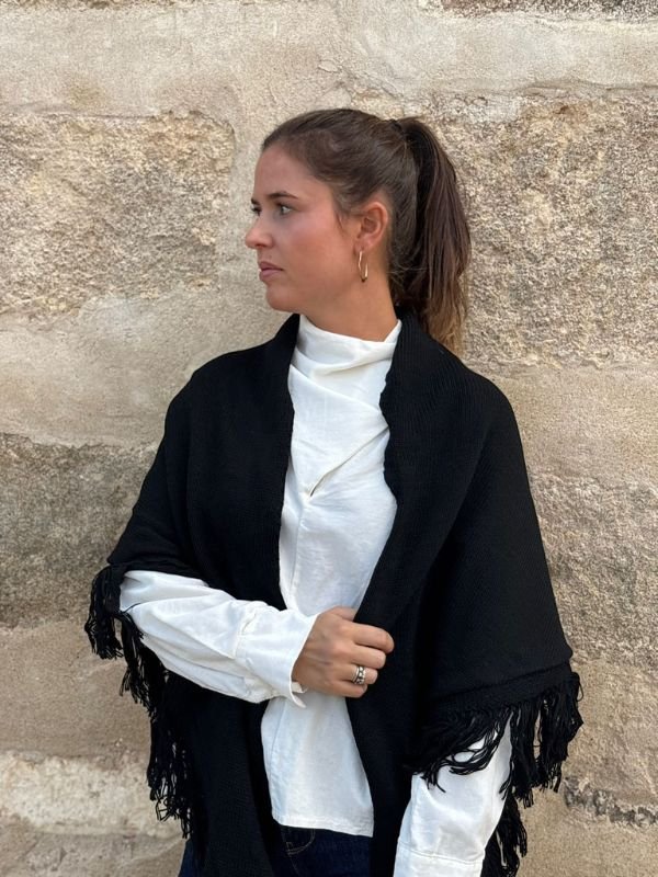 Poncho de lana negro. Cálido, ligero y perfecto para elevar cualquier look.